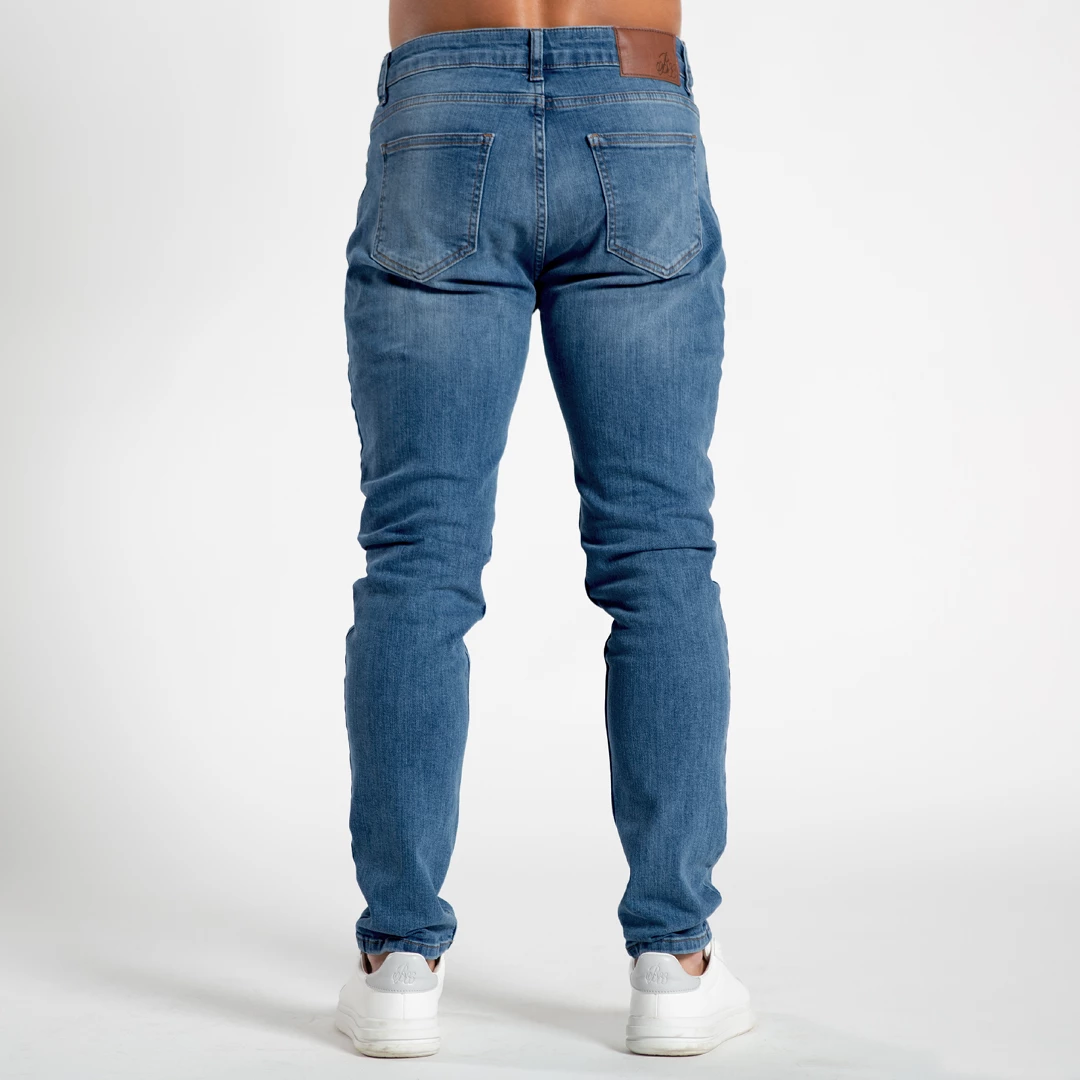 Best selling washed blue stretch denim, in our brand new loose fit. This fit silhouette draws inspiration from 90’s style. Feature branded button, a zip-fly and rear faux leather waist patch.