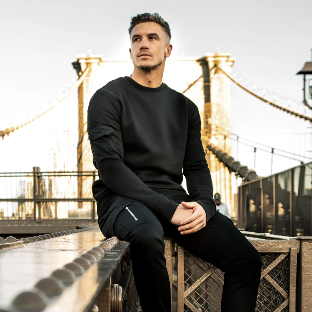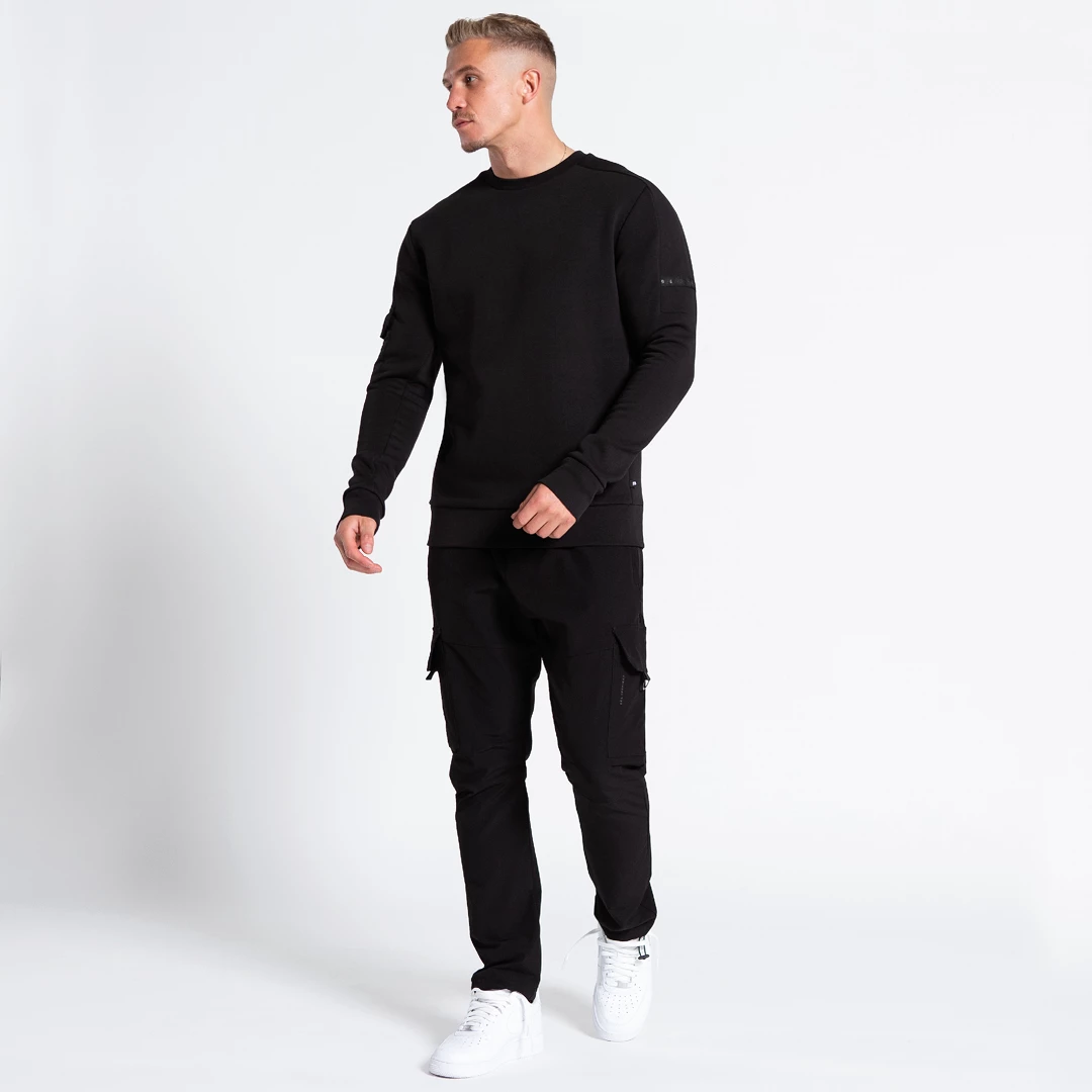 The Jordan crew sweater is in our classic signature fit. Customised with a crew neck, thick ribbed cuffs, and panel detailing on the left sleeve. Also features a functional velcro utility style pocket on the right sleeve. Branded with our new ‘B’ monogram near the hem, as well as our linear text logo on the sleeve.