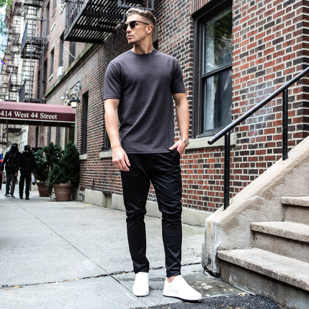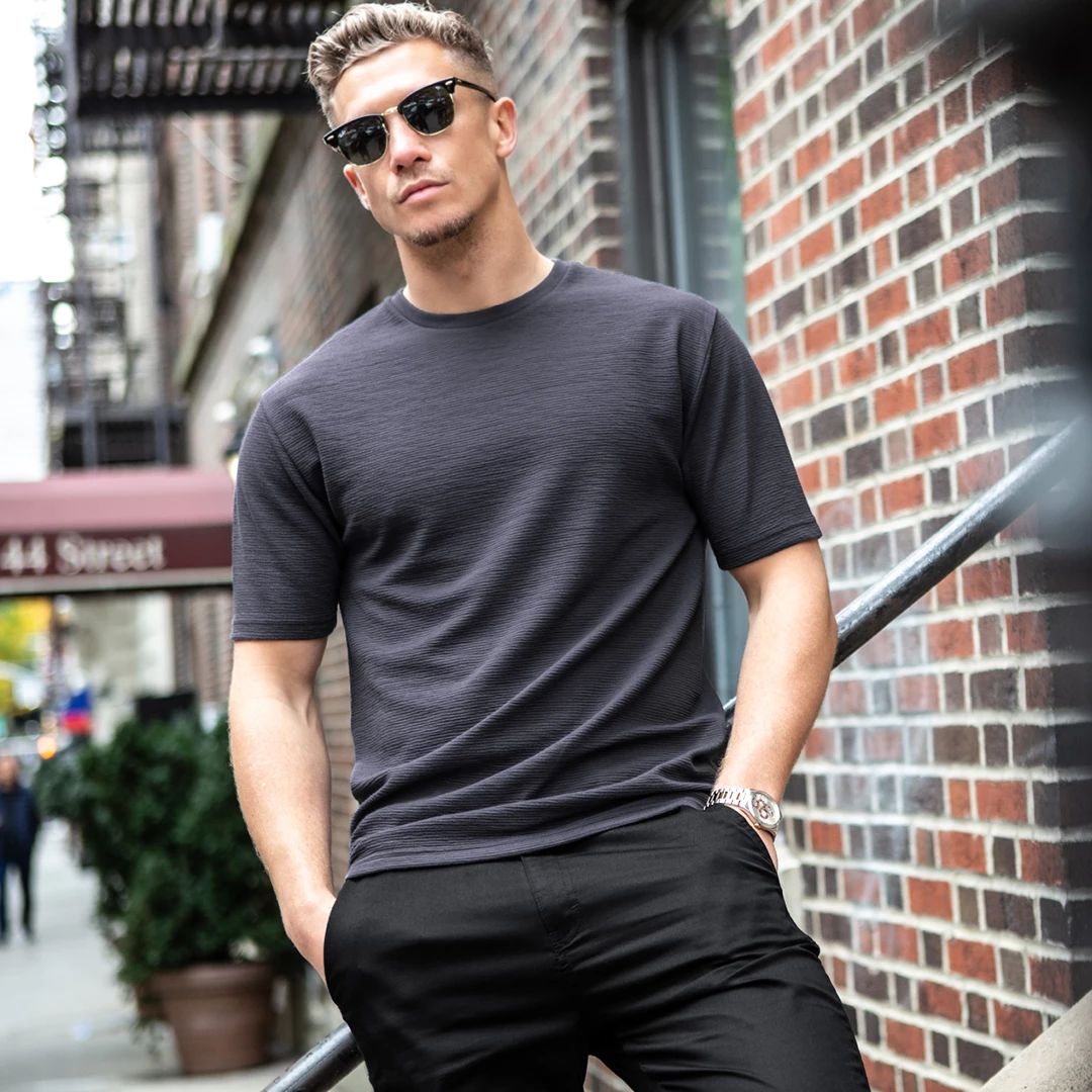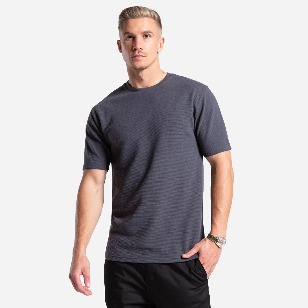 Premium fabric Rowe t-shirt in charcoal, in our bestselling regular fit. Features a straight hem finish.