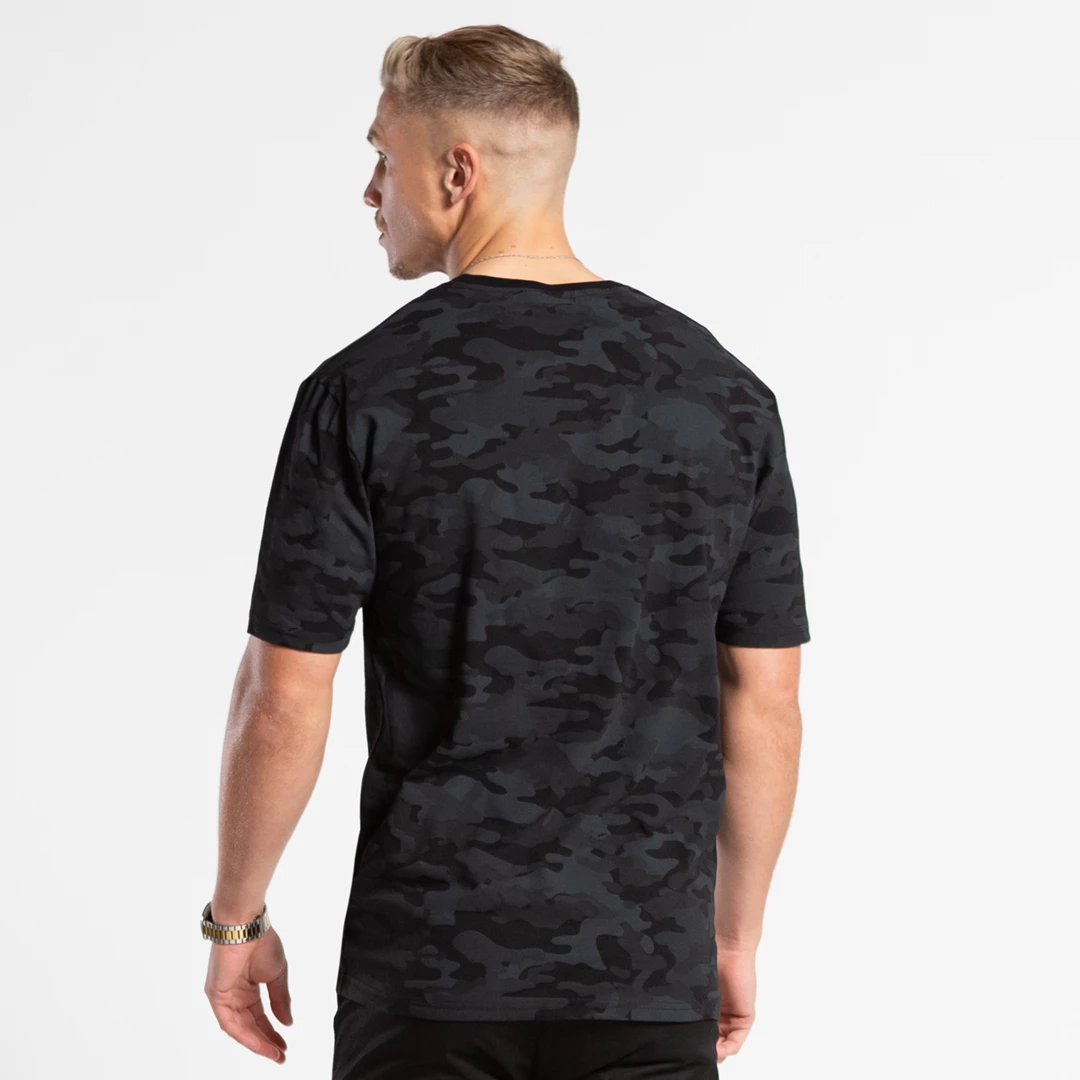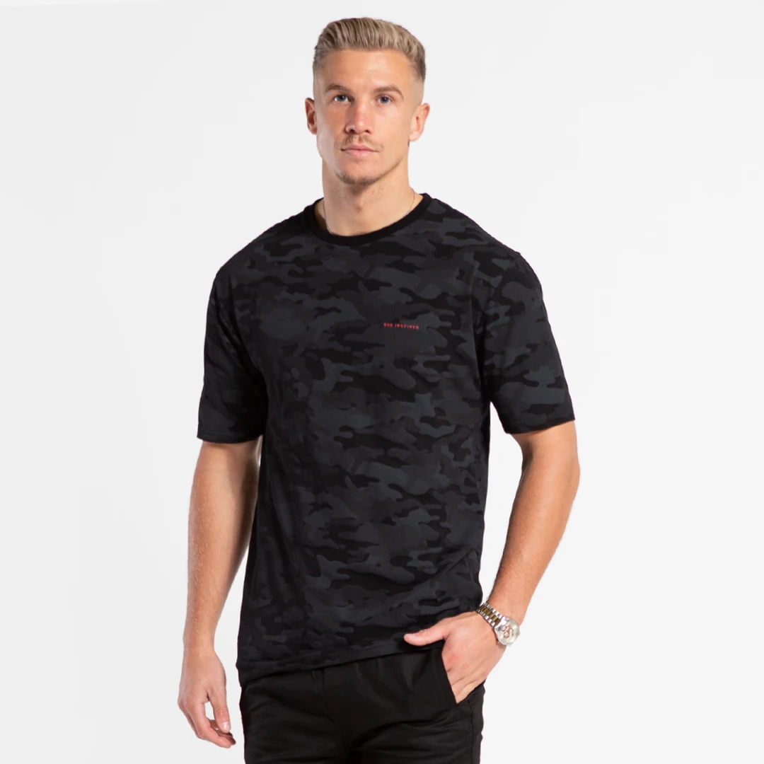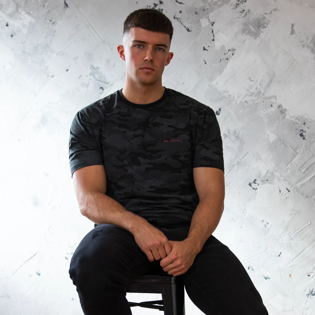 In our classic athletic fit, this stretch cotton tee in black camo features a straight hem finish and is complete with our Linear Bee Inspired logo in red on the chest, as well as our Hex Badge at the hem.