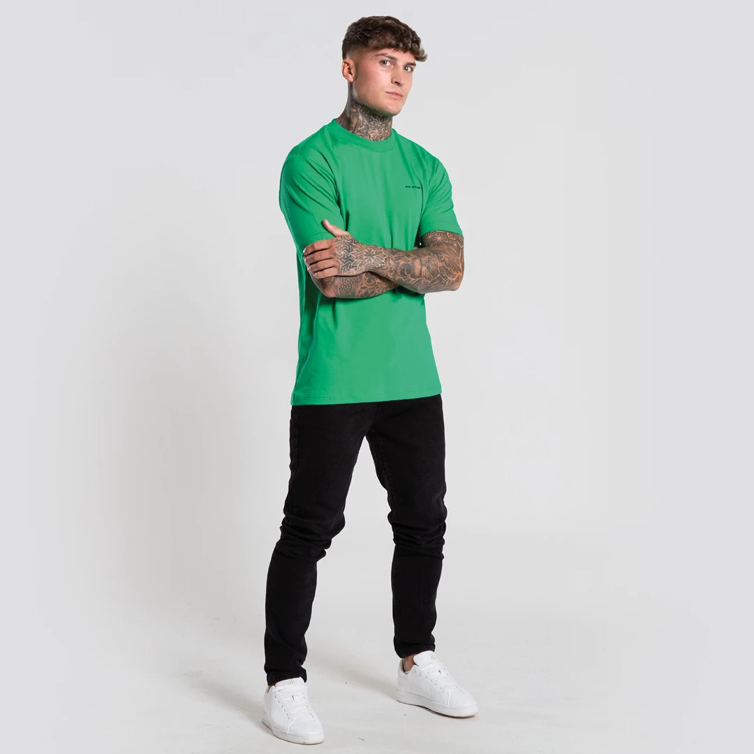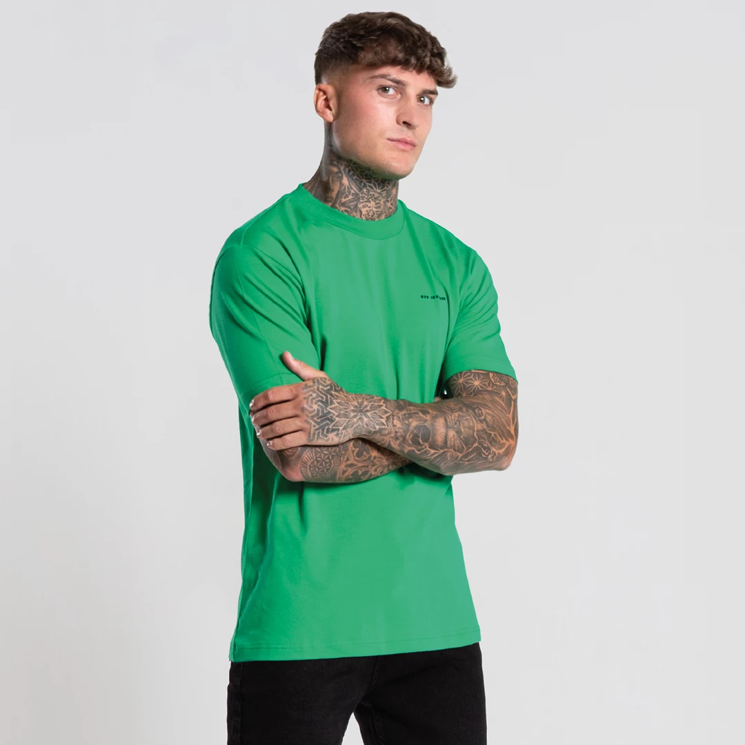 Regular fit stretch cotton tee in green featuring a straight hem finish and complete with a linear ‘Bee Inspired’ logo in black on the left chest.