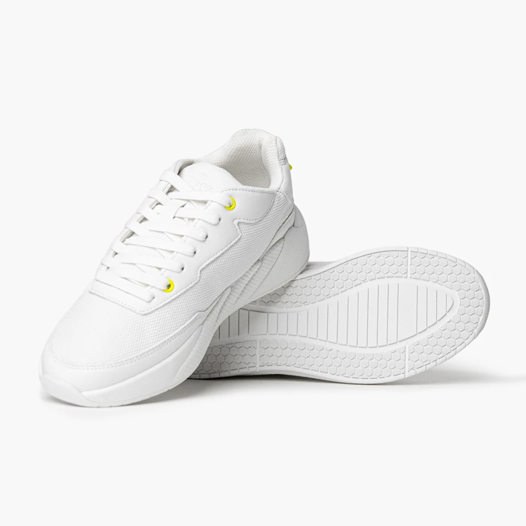The Tella Runner is a lightweight runner complete with detail to make it look sporty, designed and perfected to provide all day wearability. The Runner involves a textile and synthetic upper including leather, mesh and PU, along with textile linings, in an overall white colour with yellow hints to make the trainer stand out. Featuring a lace-up fastening and a cushion midsole with a durable rubber sole, and finished with our iconic B33 printed on the tongue.