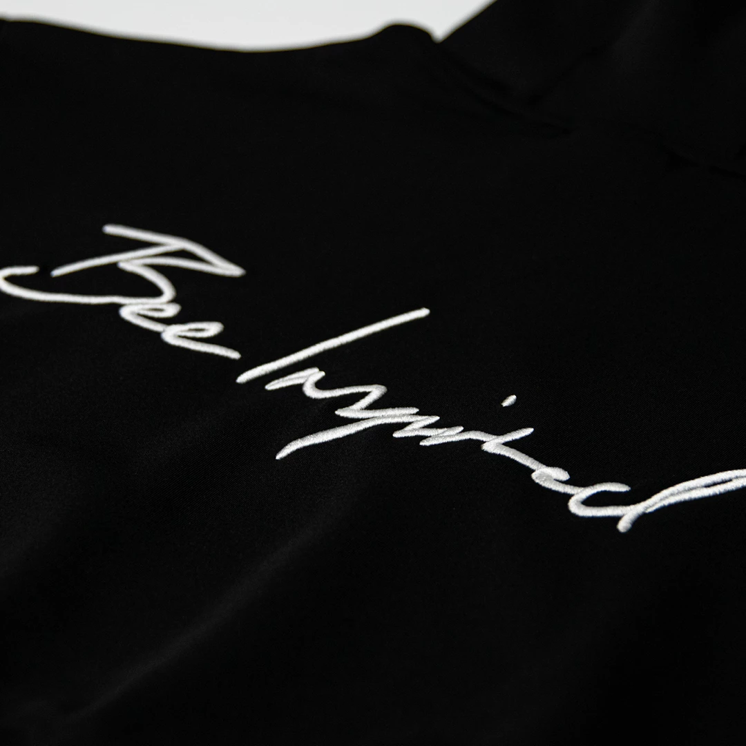 The ultimate fit cropped hoodie. Our overhead cropped hoodie is in soft scuba fabric, featuring a relaxed look with a loose fit and sleeves. Customised with elasticated rib cuffs, hooded with no drawstrings, with our Bee Inspired Linear Script Logo embroidered on the left chest and a large linear script embroidery on the back.
