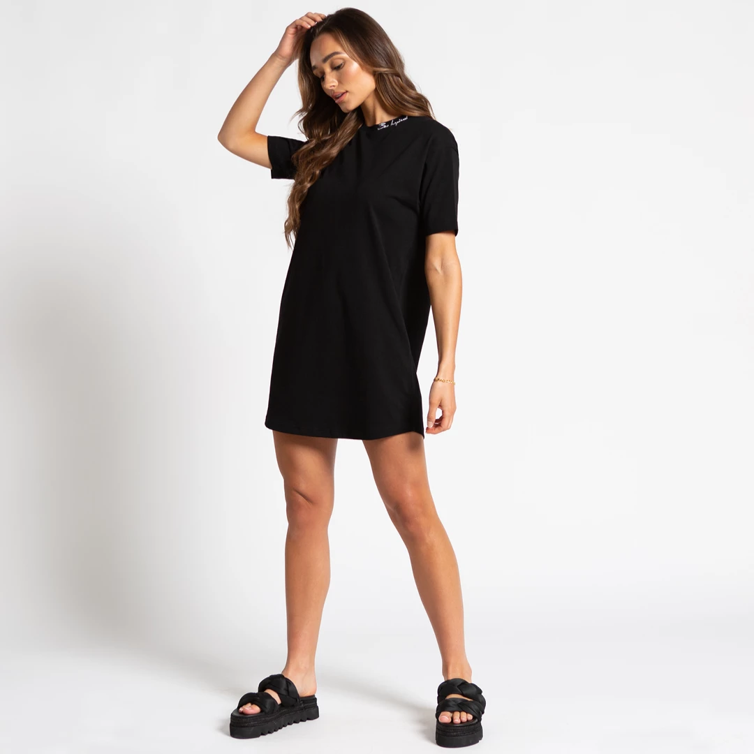 Our Lifestyle T-shirt Dress is one for any occasion. An oversized dress in our premium cotton t-shirt material. The T-shirt Dress features crew neck design, loose sleeves, a curved bottom edge and our signature Bee Inspired script logo around the neck seam.